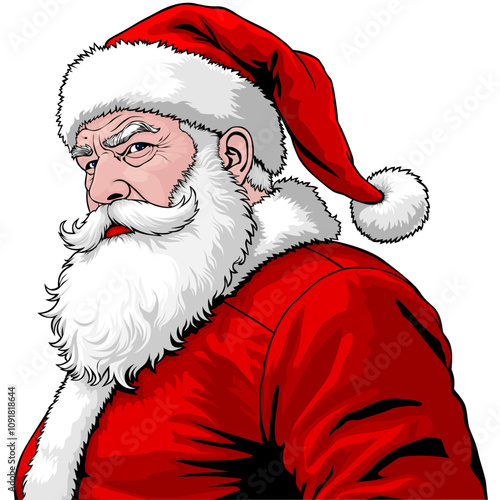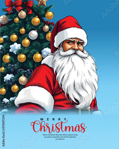 Векторная иллюстрация Санта-Клауса в красном костюме, изображающая большой снежок. Счастливого Рождества и Счастливого Нового года концепция в стиле ретро-поп-арт комиксов.
