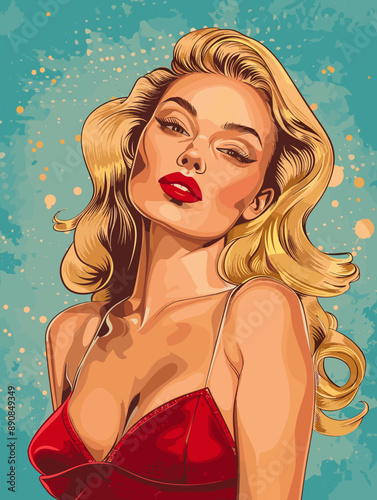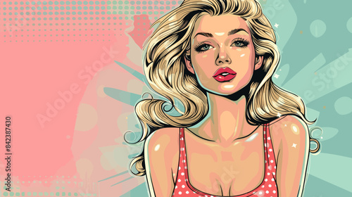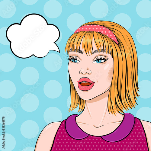 Векторная иллюстрация молодой женщины с потрясенным выражением лица. Девушка с подстриженными волосами в стиле комиксов ретро-поп-арта.