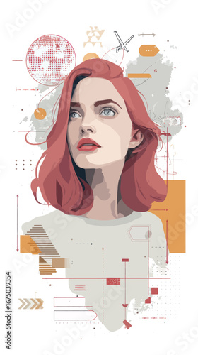 Векторная иллюстрация успешной деловой женщины, думающей о деньгах, мысленный пузырь в стиле комиксов ретро-поп-арта.