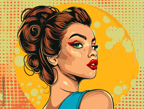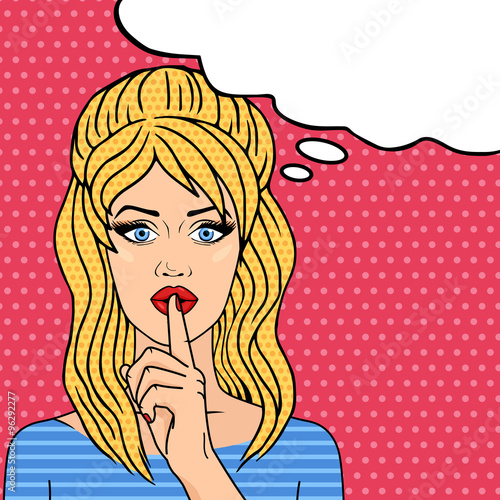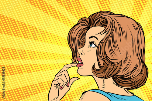 Векторная иллюстрация прекрасной леди, вспоминающей что-то, подумал пузырь. Портрет красивой женщины в стиле комиксов ретро-поп-арта.
