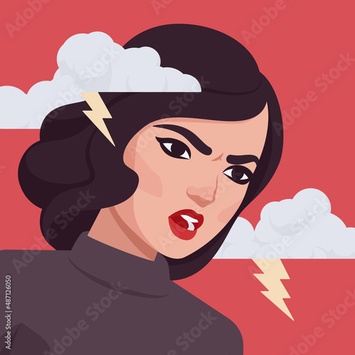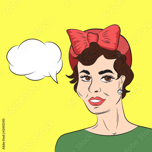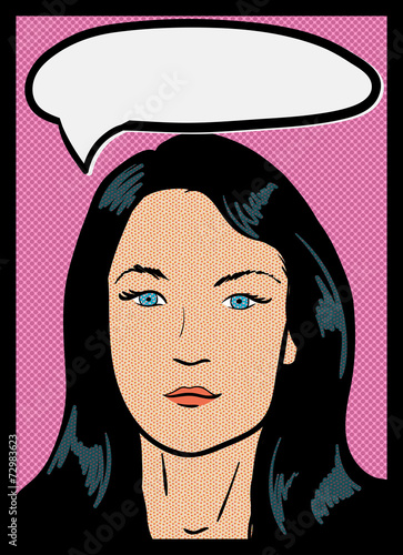 Векторная иллюстрация красивой молодой женщины, испытывающей проблемы. Портрет грустной девушки в стиле комиксов ретро-поп-арта.