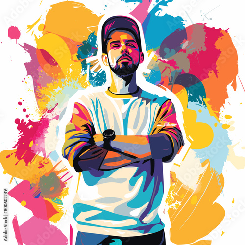 Векторная иллюстрация красивого молодого человека, будильника и речевого пузыря бума. Панический человек, просыпающийся поздно утром в стиле комиксов ретро-поп-арта.