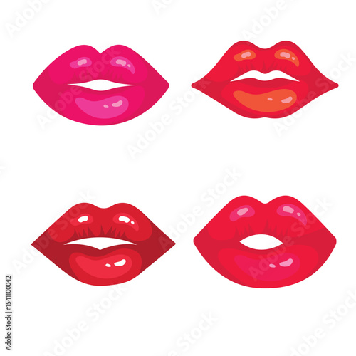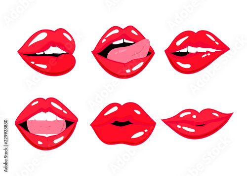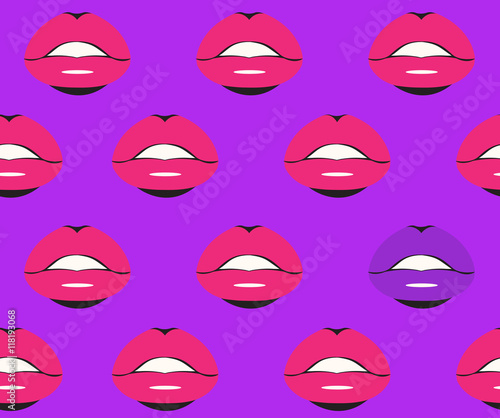 Векторный поп-арт сексуальный цвет женских губ. Модные заплатки в стиле ретро-комиксов. Иллюстрация.