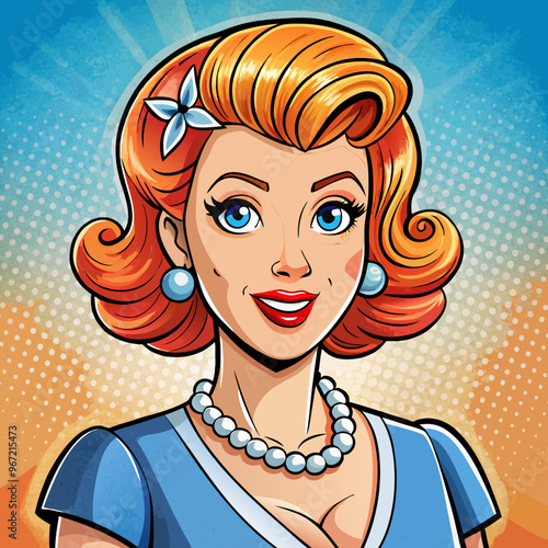 Векторная иллюстрация улыбающейся молодой девушки, показывающей знак победы или мира рукой или жестом. Красивая девушка в стиле пин-ап, жестикулирующая в стиле комиксов ретро-поп-арта.