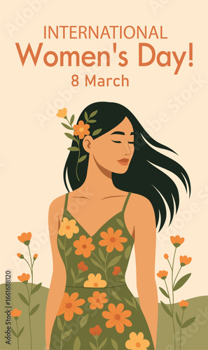 Векторная иллюстрация сексуальной девушки с длинными развевающимися розовыми волосами, стоящей перед зеркалом. Красивая гламурная женщина с портретом цветов в стиле комиксов ретро-поп-арта.