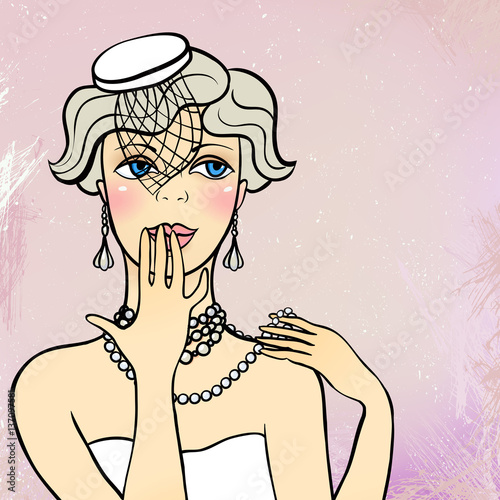 Векторная иллюстрация красивой чудо-девушки, речевой пузырь. Симпатичная молодая женщина с розовыми волосами в стиле комиксов ретро-поп-арта.