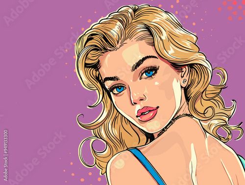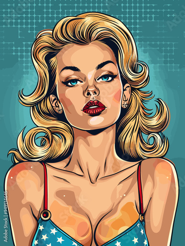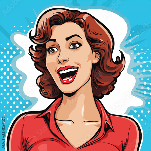 Векторная иллюстрация красивой удивленной леди в стиле пин-ап, вау-речевой пузырь. Чудо-девушка в стиле комиксов ретро-поп-арта.
