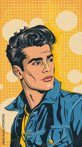 Векторная иллюстрация молодого человека в очках, показывающая знак руки "ок", речевой пузырь. Портрет красивого мужчины в стиле комиксов ретро-поп-арта.