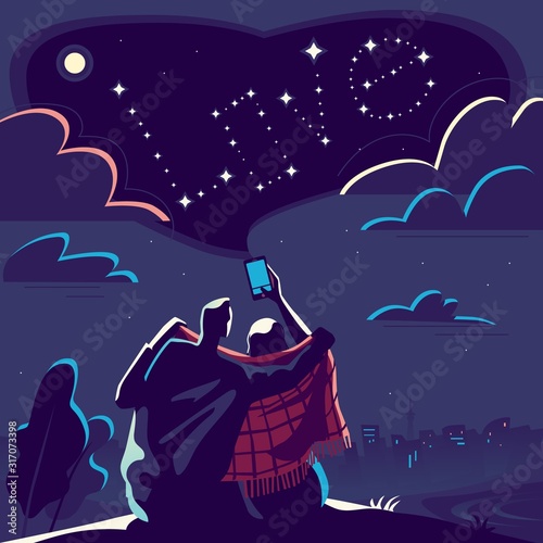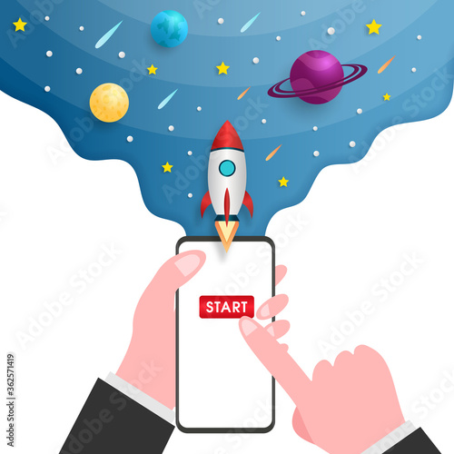 Векторный плакат с надписью "Продажа во всех приложениях". Санта-Клаус показывает подарок на мобильном телефоне указательным пальцем. Иллюстрация концепции рождественской распродажи.