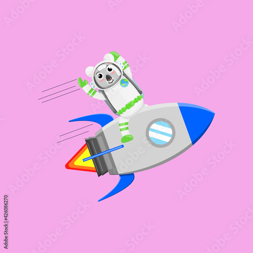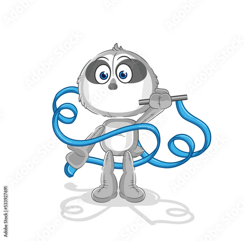 Векторная иллюстрация енота. Осенний значок животного. Изолированный мультяшный веселый персонаж, милый, в резиновых дождевых сапогах, прыгающий в луже на белом фоне