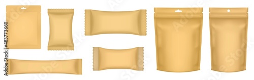 Векторный набор упаковок для фаст-фуда. Реалистичные шаблоны пустых упаковок продуктов питания навынос, изолированные на белом фоне.