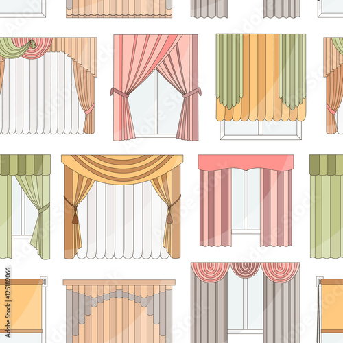 Векторный набор золотых оконных штор и портьер. Реалистичная иллюстрация, выделенная на белом фоне.