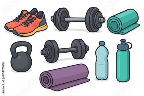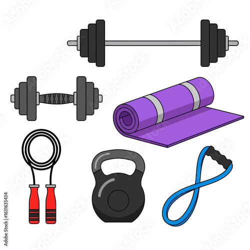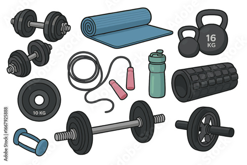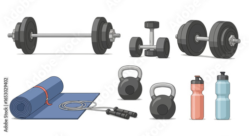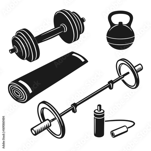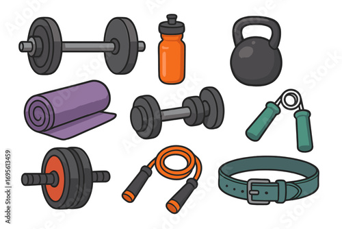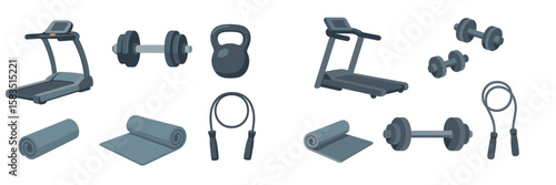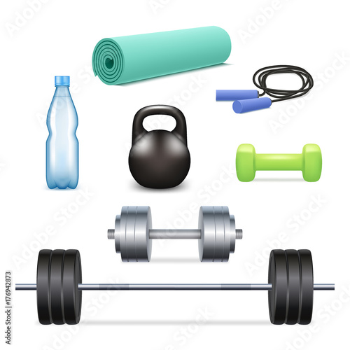 Набор векторных значков тренажерного зала. Реалистичная 3d-иллюстрация, изолированная на белом фоне.