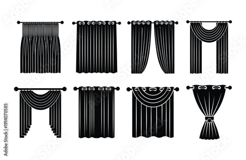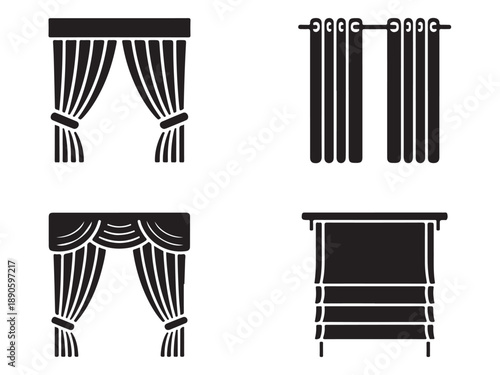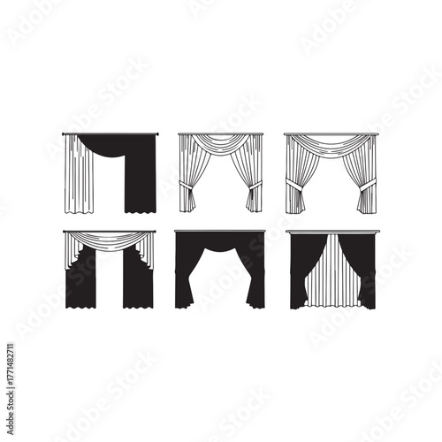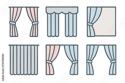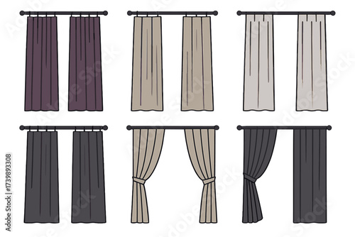 Набор векторных оконных штор и портьер. Реалистичная иллюстрация, выделенная на белом фоне.