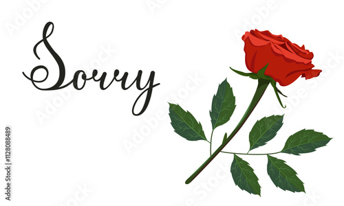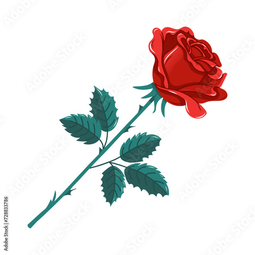 Векторный значок цветка красной розы. одиночный бутон с лепестком и листом на стебле шипа, изолированный на белом фоне. Красивый символ романтики и любви. Волшебный аксессуар для циркового шоу