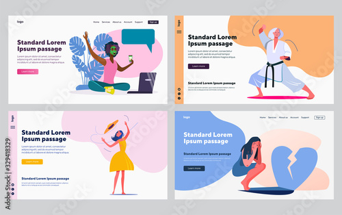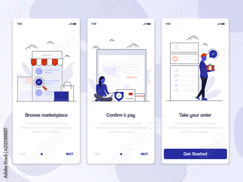 Векторный набор экранов для мобильных приложений с концепцией перемещения или релокации. Услуги по упаковке, перемещению и доставке шаблонов дизайна веб-сайтов и веб-баннеров.
