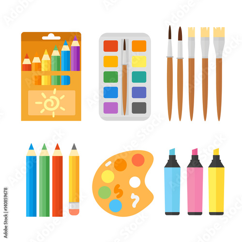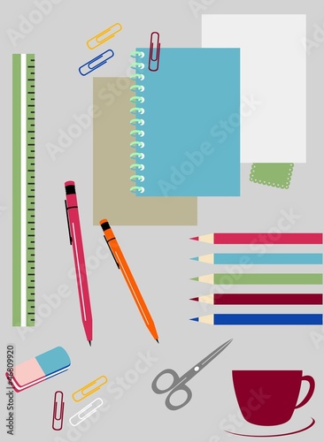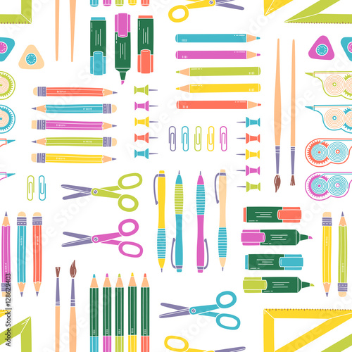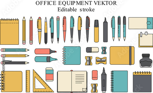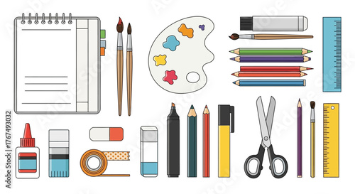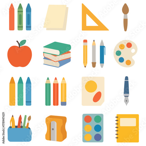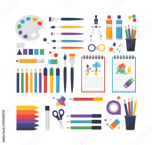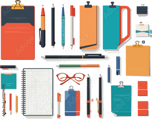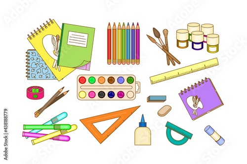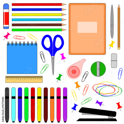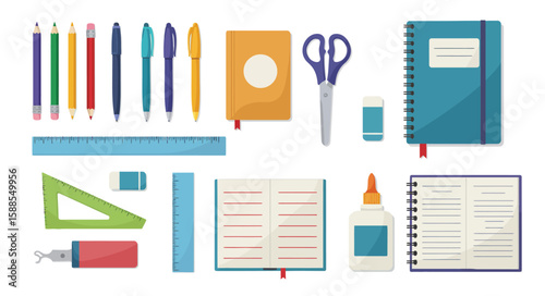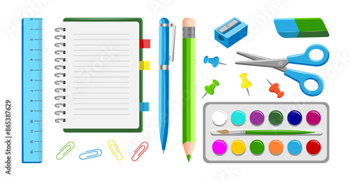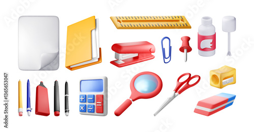 Векторный реалистичный набор канцелярских значков. Школьные и офисные принадлежности.