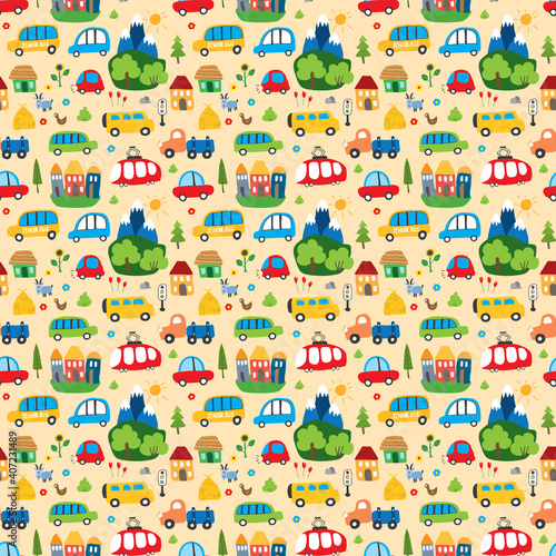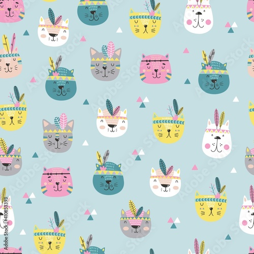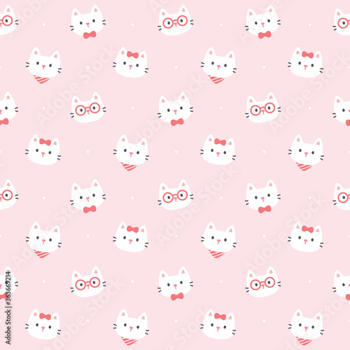 Векторный бесшовный узор с милыми кошками и осенними листьями. Забавные осенние кошки фон, обои, ткань, оберточная бумага.