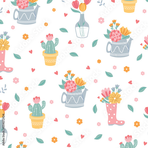 Векторный бесшовный узор с милой парой влюбленных кошек. Счастливые романтические обнимающиеся котята с сердечками на фоне, обои, ткань, оберточная бумага.