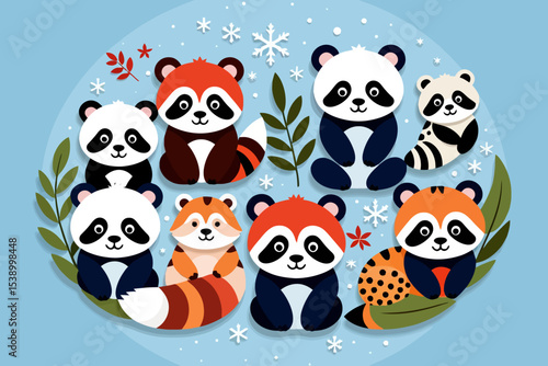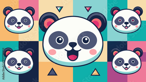 Векторный бесшовный узор с милыми пандами, поедающими листья бамбука и пончики. Забавный фон для поедания животных, обои, ткань, оберточная бумага.