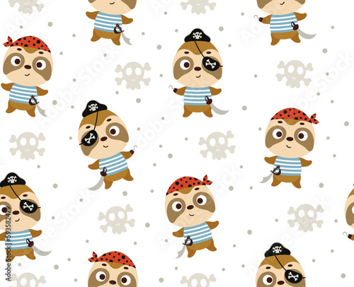 Векторный бесшовный узор с милыми ленивцами, свисающими вниз головой с ветки дерева, сидящими в позе йоги, слушающими музыку. Забавный фон ленивца, обои, ткань, оберточная бумага.