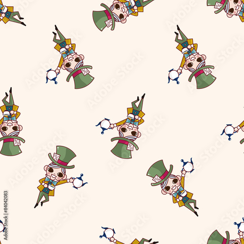 Векторный бесшовный узор с милой маленькой ведьмой, читающей волшебную книгу, держащей бутылку с зельем и метлы, котлы, летучих мышей вокруг нее. Фон для Хэллоуина, обои, ткань, оберточная бумага.