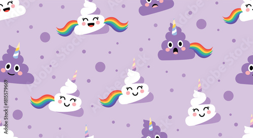Векторный бесшовный узор с милыми маленькими девочками, мифическими существами и сказочными персонажами, творящими волшебство с помощью волшебной палочки и зелья. Фон детской волшебницы, обои, ткань, оберточная бумага.