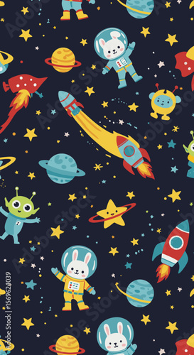 Векторный бесшовный узор с милой маленькой ведьмой, едущей на своей метле через полную луну. Фон для Хэллоуина, обои, ткань, оберточная бумага.