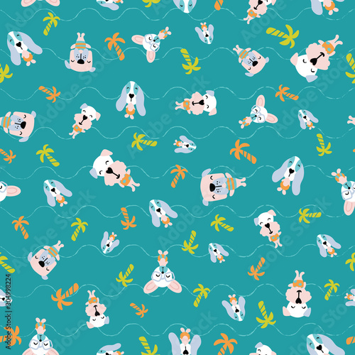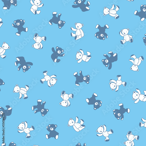 Векторный бесшовный узор с милым маленьким медведем, оленем и енотом, летящими на самолете и биплане. Забавный фон с животными-пилотами, обои, ткань, оберточная бумага.