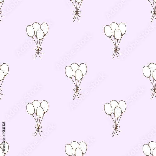 Векторный бесшовный узор с милыми кошками, летящими на воздушных шарах в небе. Забавные весенние кошки фон, обои, ткань, оберточная бумага.