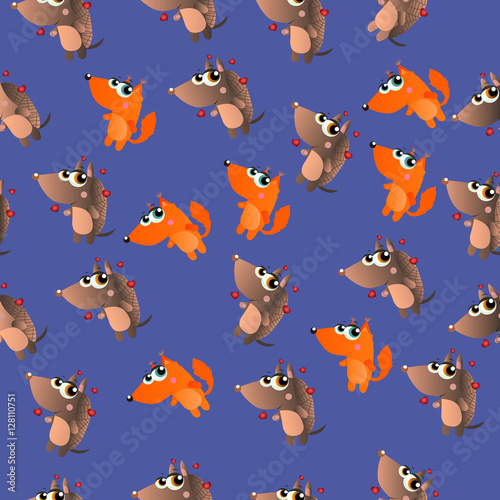 Векторный бесшовный узор с милыми животными медведем, белкой и лисой, летящими в небе в костюмах супер героев. Фон с животными-супергероями, обои, ткань, оберточная бумага.