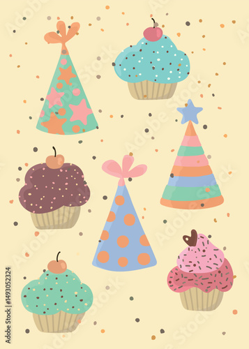 Векторный бесшовный узор со сладостями, леденцами на палочке, леденцовыми палочками и сладкими домиками. Фон из сладких конфет, обои, ткань, оберточная бумага.