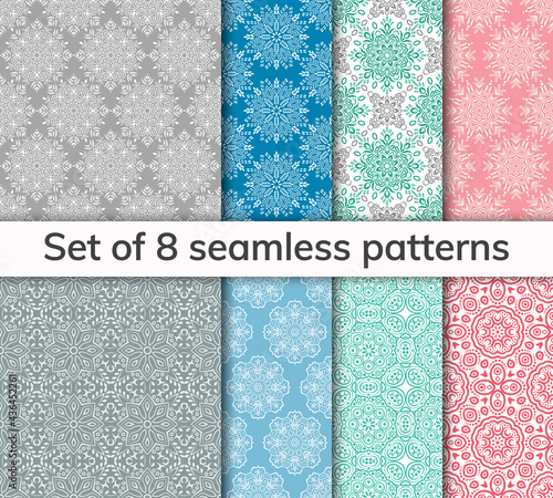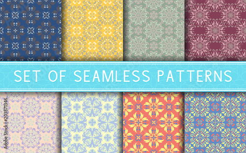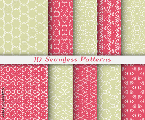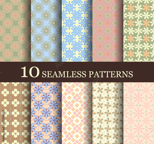 Векторный набор из 10 бесшовных цветочных узоров. Декоративные цветы и элементы дизайна для текстиля, обложки книг, изготовление, приглашения, поздравительные открытки, печать, подарочная упаковка.