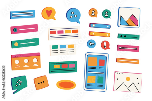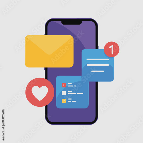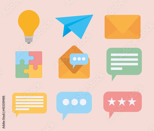Векторный набор 3d-речевых пузырей, писем электронной почты и бизнес-значков. Сообщение, почтовый ящик мобильного телефона, уведомления в чате, значки социальных сетей. Элементы 3D-рендеринга.