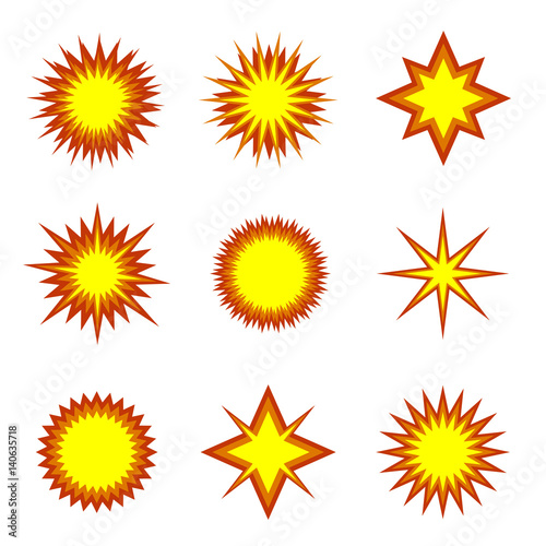 Векторный набор абстрактных взрывов в стиле комического поп-арта. Векторная иллюстрация. Элементы дизайна.