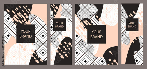 Векторный набор абстрактных фонов ручной росписи для дизайна историй в социальных сетях, узор украшения стен, современный плакат, принты. Абстрактные фоновые иллюстрации.