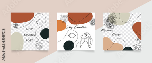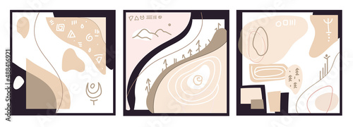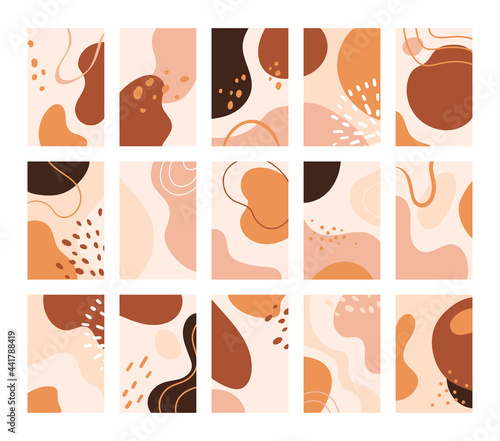 Векторный набор абстрактных фонов ручной росписи для дизайна историй в социальных сетях, узор украшения стен, современный плакат, принты. Абстрактные фоновые иллюстрации.