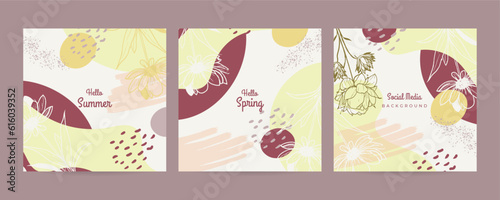 Векторный набор абстрактных фонов ручной росписи для дизайна историй в социальных сетях, узор украшения стен, современный плакат, принты. Абстрактные фоновые иллюстрации.
