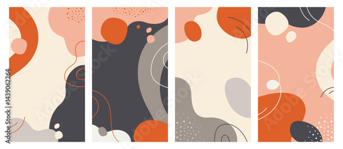 Векторный набор абстрактных фонов ручной росписи для дизайна историй в социальных сетях, узор украшения стен, современный плакат, принты. Абстрактные фоновые иллюстрации.