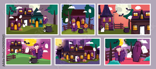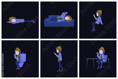 Векторный набор плакатов для пожилых людей. Дедушка, инвалидная коляска, лестничный лифт и другие элементы дизайна в стиле квартиры.