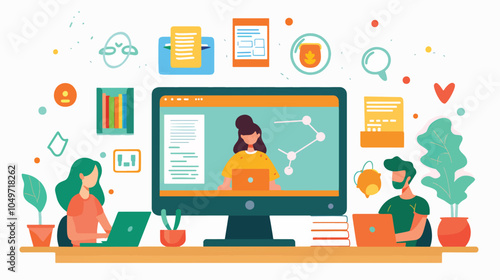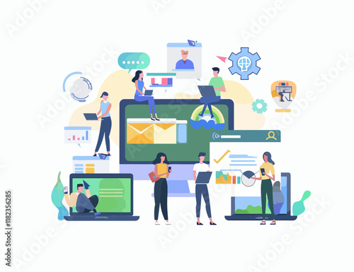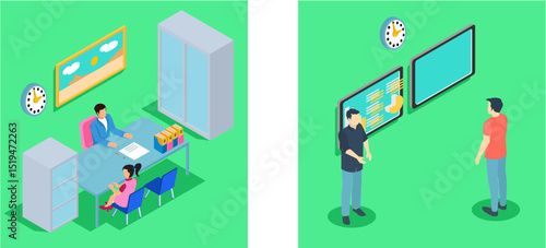 Векторная иллюстрация билетной кассы аэропорта, агента рампы и пассажиров. Символы людей в аэропорту, значки, выделенные на белом фоне. Дизайн в плоском стиле.