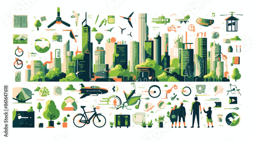 Векторный набор элементов дизайна банковской концепции в плоском стиле. Касса, зал ожидания, рабочие места сотрудников банка, сейф, терминал самообслуживания, банкомат. Сотрудники банка, охранник, инкассатор, клиенты.