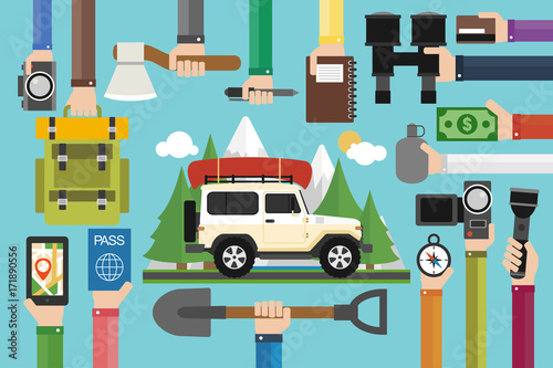 Векторный набор элементов дизайна банковской концепции в плоском стиле. Сотрудники банка, охранник, клиенты, банкомат, сейф, инкассатор, бронированный автомобиль.
