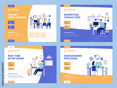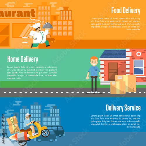 Векторный набор горизонтальных баннеров с элементами дизайна сервисных роботов, роботов-помощников и промышленных роботов. Концепция домашней, сервисной и промышленной автоматизации в плоском стиле.