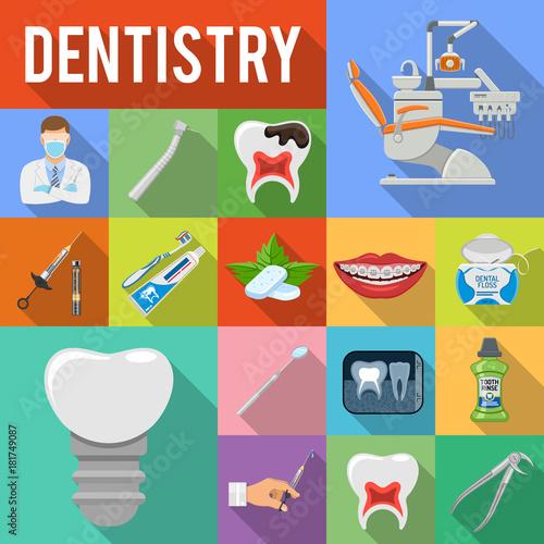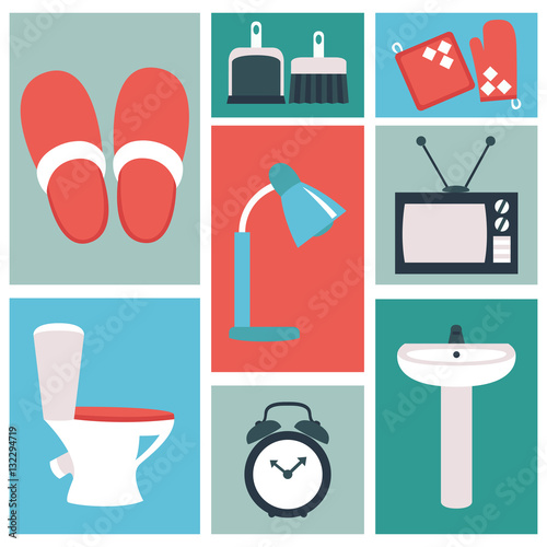 Векторный набор плоских значков ванной комнаты с длинной тенью.