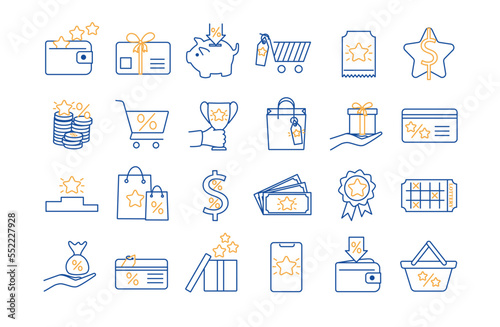 Векторный набор иконок бизнеса и цифровых денег в стиле тонкой линии. Пользовательский интерфейс веб-сайта и значок мобильного веб-приложения. Иллюстрация контурного дизайна