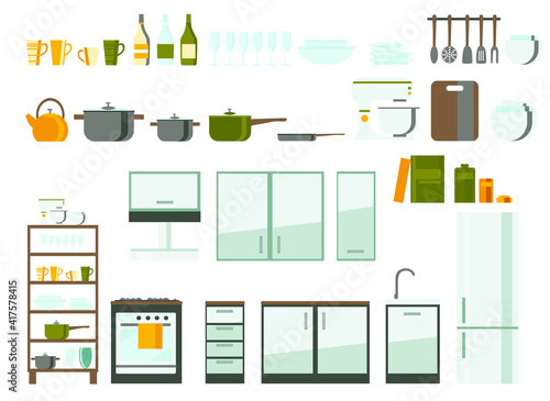 Векторный набор бизнес-плакатов, баннеров. Современный интерьер офисного помещения с офисной мебелью и оборудованием. Дизайн в плоском стиле.