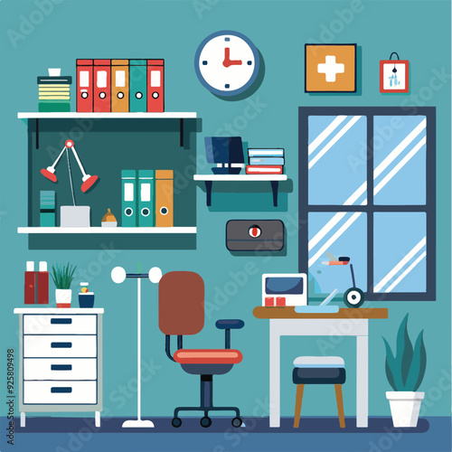 Векторный набор бизнес-плакатов, баннеров. Современный интерьер офисного помещения с офисной мебелью и оборудованием, а также интерьер ресторана. Дизайн в плоском стиле.