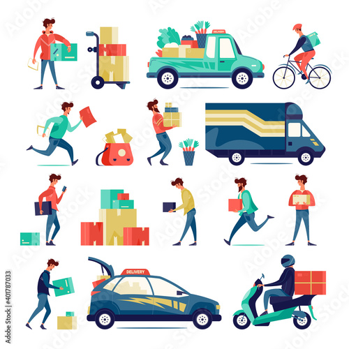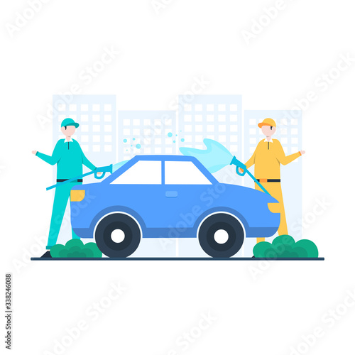 Векторный набор значков автосервиса, работников автомастерской, изолированных на белом фоне. Элементы дизайна в плоском стиле.