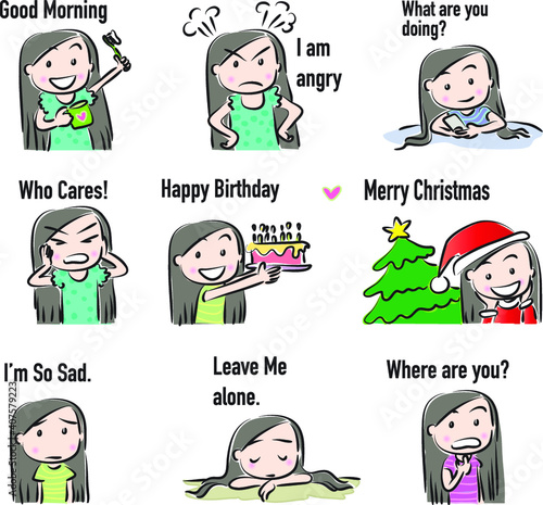 Векторный набор открыток с милыми маленькими ведьмами, летучими мышами, тыквами, кошками и цитатами на Хэллоуин. Симпатичные девушки-герои мультфильмов летают на метле, готовят зелье в кипящем котле и т.д.